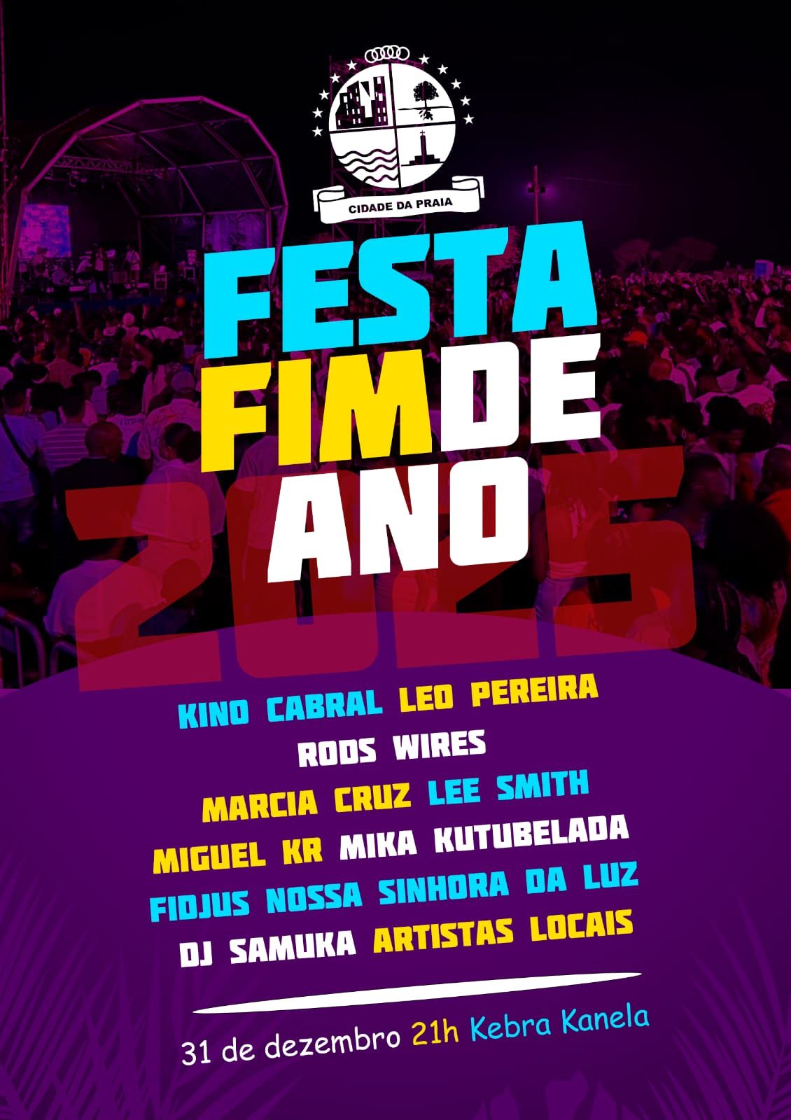 SAVE DE DATE: GRANDE SHOW DA VIRADA DO ANO NA KEBRA KANELA - 31 DE DEZEMBRO O certame, organizado pela Câmara Municipal da Praia (CMP), acontece esta quarta-feira,31 de dezembro,às 21h00, ao largo da Kebra Kanela. Reúne a família e os amigos e venha celebrar conosco a Grande Virada do Ano! À meia-noite, como manda a tradição, haverá 12 minutos de fogo de artifício, lançados a partir da Praça da Cruz de Papa.