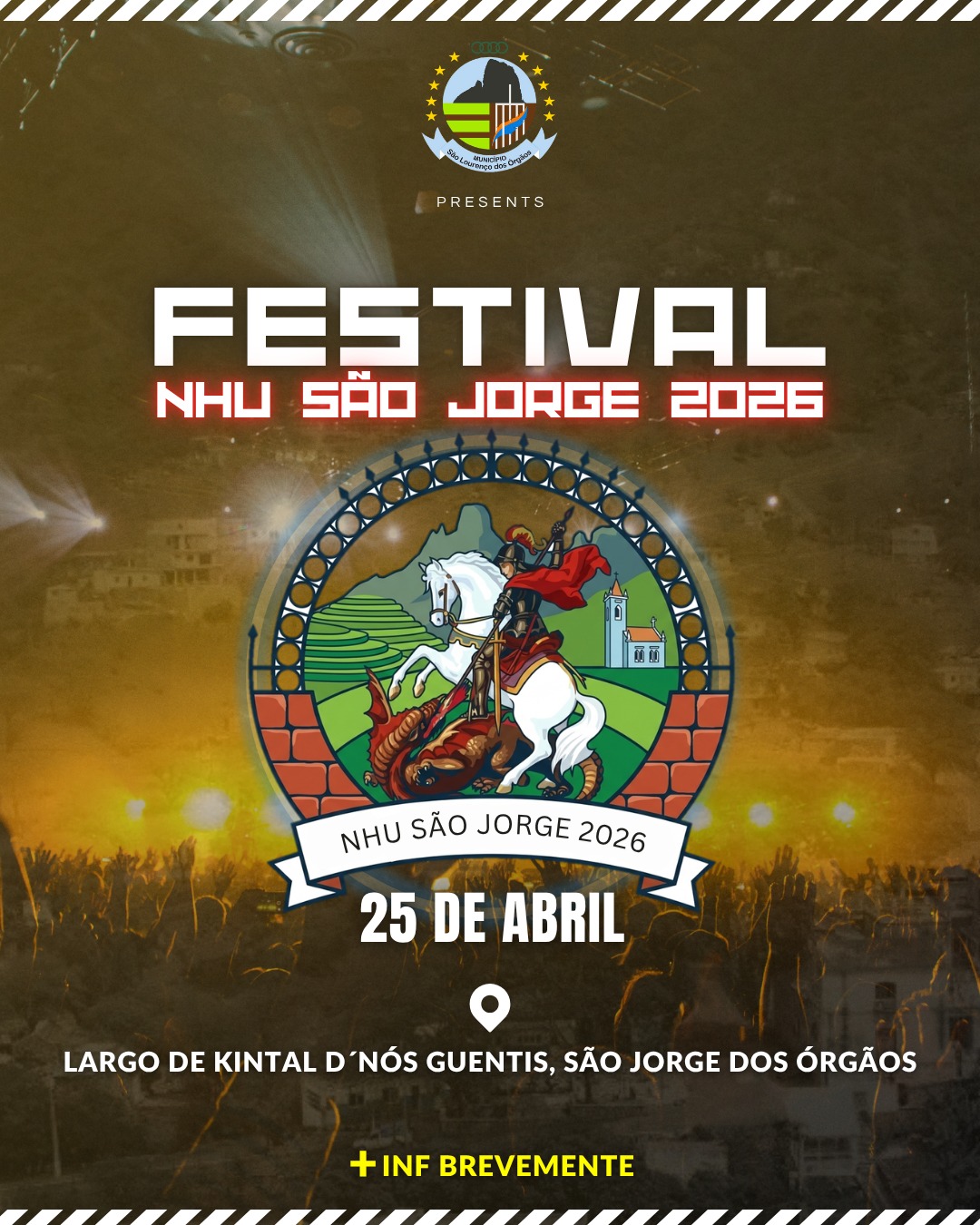 𝐒𝐚~𝐨 𝐋𝐨𝐮𝐫𝐞𝐧𝐜¸𝐨 : 𝟐𝟎 𝐚𝐧𝐨𝐬 𝐞 𝐨 𝐬𝐞𝐮 𝐩𝐞𝐫𝐜𝐮𝐫𝐬𝐨! 𝐕𝐄𝐌 𝐀Í 𝐌𝐀𝐈𝐒 𝐔𝐌𝐀 𝐄𝐃𝐈𝐂¸Ã𝐎 𝐃𝐎 𝐅𝐄𝐒𝐓𝐈𝐕𝐀𝐋 𝐍𝐇𝐔 𝐒Ã𝐎 𝐉𝐎𝐑𝐆𝐄 𝟐𝟎𝟐𝟔 No âmbito do programa das festividades de Nhu São Jorge, a Câmara Municipal de São Lourenço dos Órgãos organiza no dia 25 de Abril, sábado, mais uma edição do Festival de Nhu São Jorge. Brevemente são anunciados os artistas que fazem parte do cartaz deste festival. 𝐅𝐚𝐥𝐭𝐚𝐫 𝐞´ 𝐩𝐞𝐫𝐝𝐞𝐫