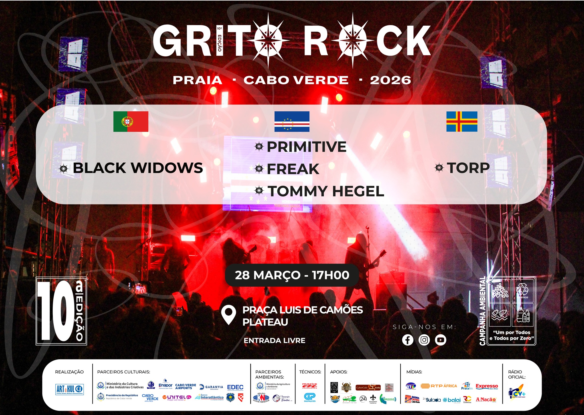 28 de março - Festival Grito Rock Praia Show de música alternativa com atuação das cinco bandas nacionais e internacionais, na Pracinha da Escola Grande, entre 17h00 e 23h50. Este será o momento alto da programação.